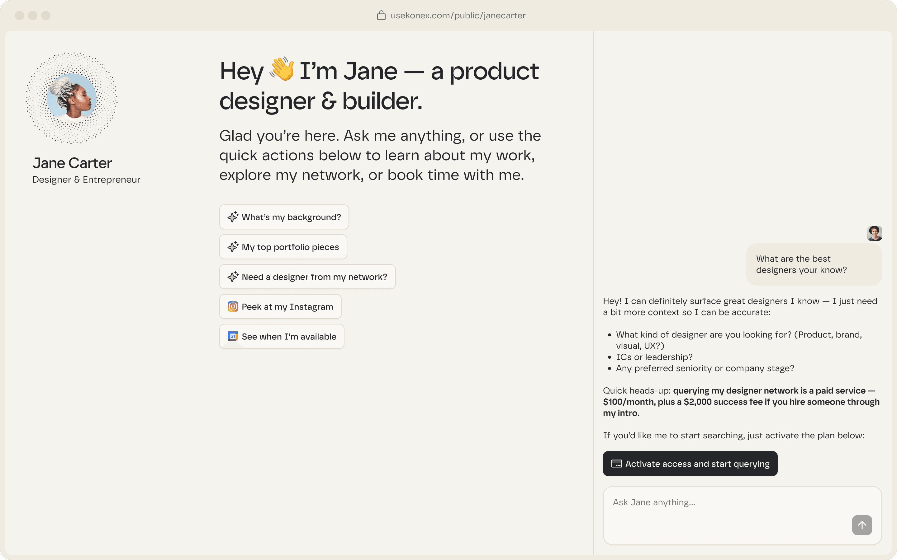 Ask for anyone — talent, clients, investors, partners — and Konex finds the warmest, verified paths across your real connections.